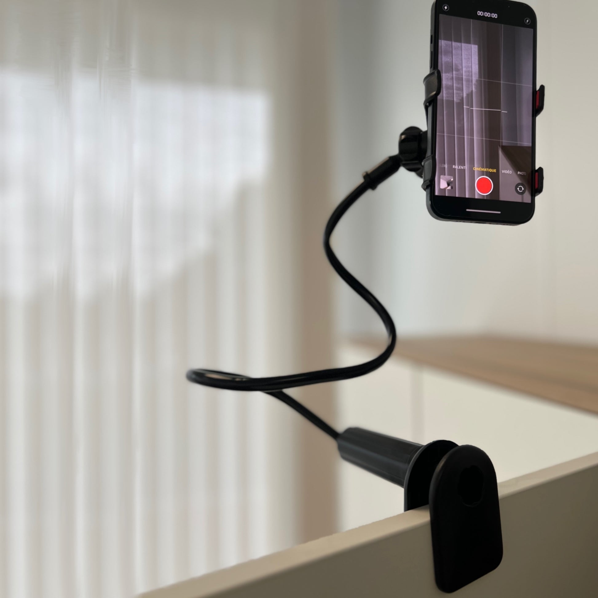 ✅ Pied flexible et solide – s’accroche partout (table, guidon, branche…) et s’adapte à tous les environnements.